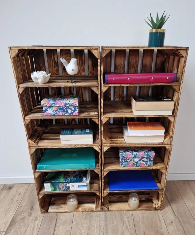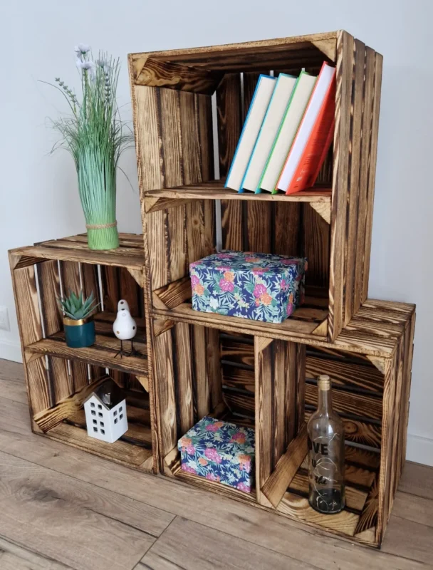Wooden crate with 2 shelves 50×40×30 – Burnt & Natural