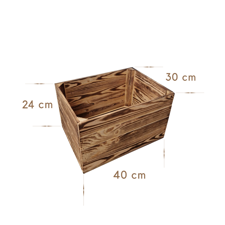 Wooden crate 40x30x24 cm – Natural & burnt effect